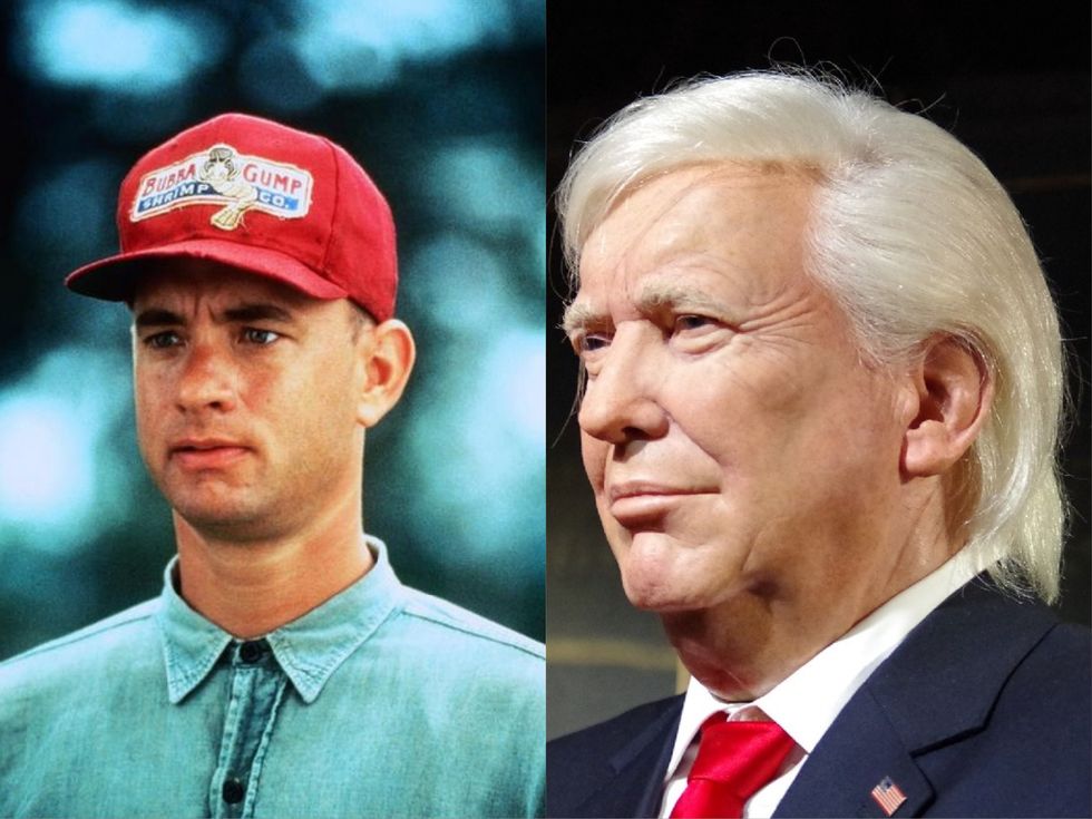 So, you make yourself look like Donald Trump, but you have a Bubba Gump hat and talk like Forrest Gump.