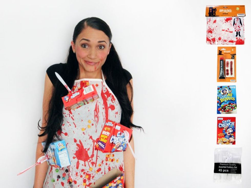 Dress up as a murderer in any way that you want, but add some cereal boxes and a spoon to your costume. Make sure to have a piece of all your victims.