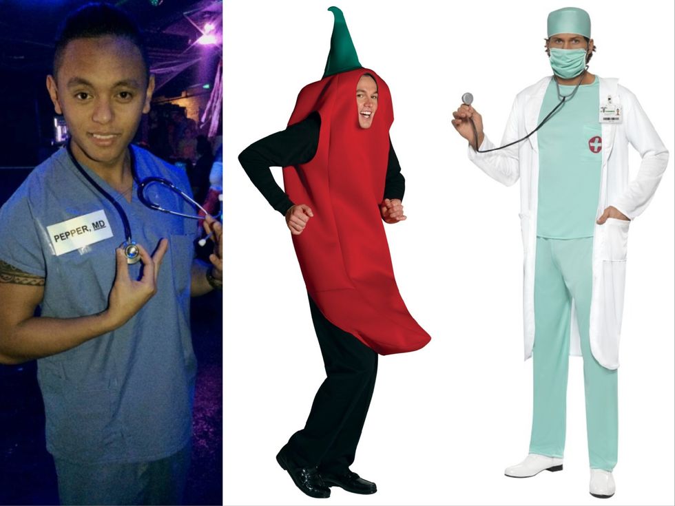 This one also allows some freedom with how to personalize the costume. You can either be a doctor with the name "Pepper" on your nametag, or you could get a pepper costume and add a lab coat, stethoscope, and surgical mask. It all depends on who you are going to be around when you are in costume.