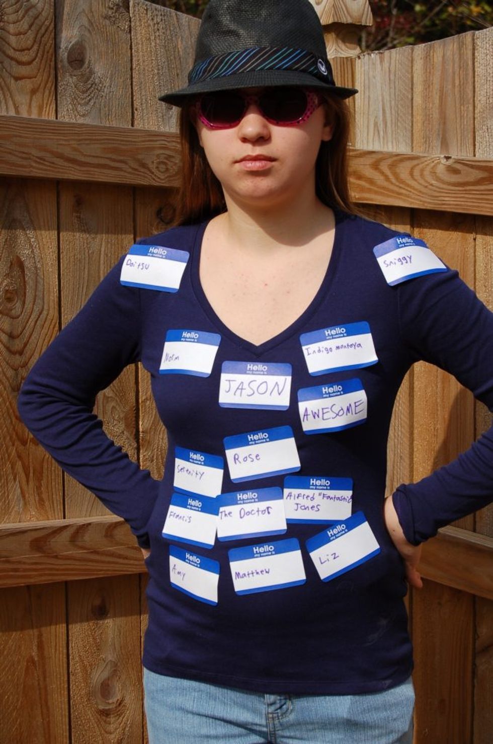 Look like some kind of burglar and cover yourself with those "Hello, my name is" nametags.