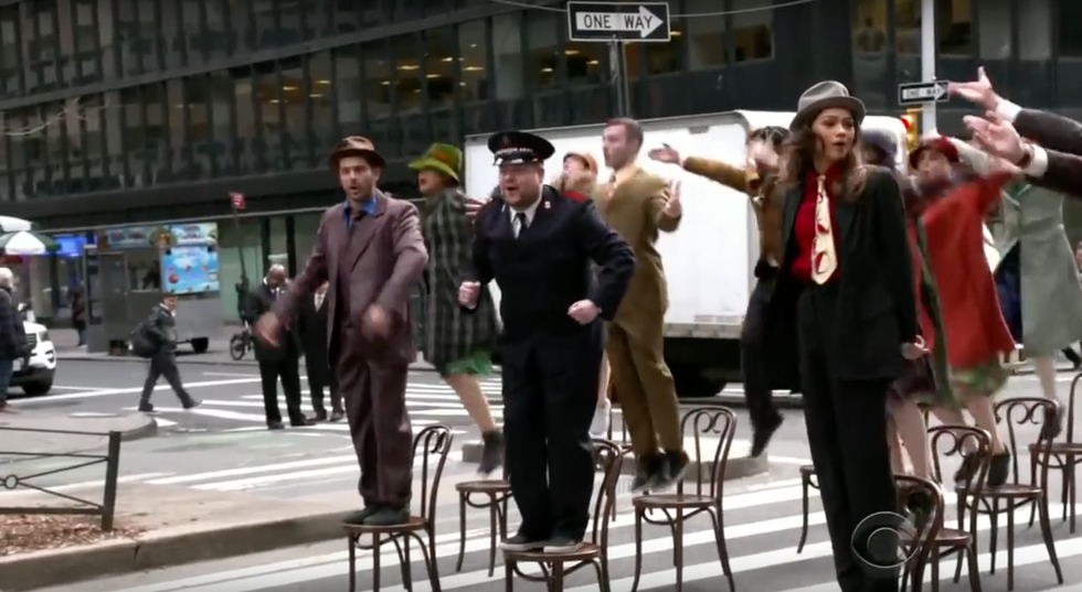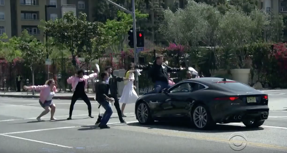 Most people have enough trouble walking across the street in the allotted time, but James Corden takes it to another level by producing a “Broadway caliber musical production” (as he would say).
