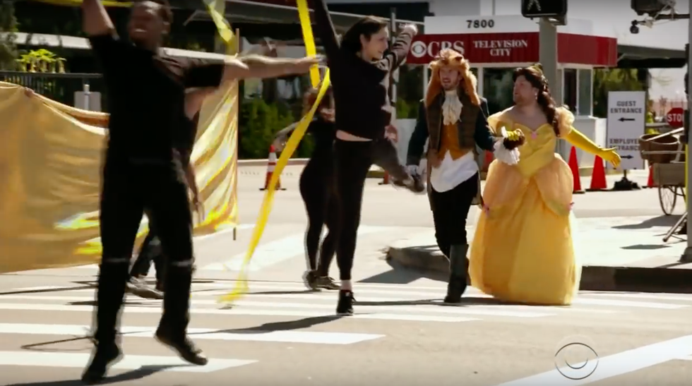 This crosswalk production is packed with celebrities from Disney's live-action version of Beauty and The Beast. Luke Evans, Dan Stevens, Josh Gad, as well as James Corden and his dance company come together to tell the "tale as old as time".