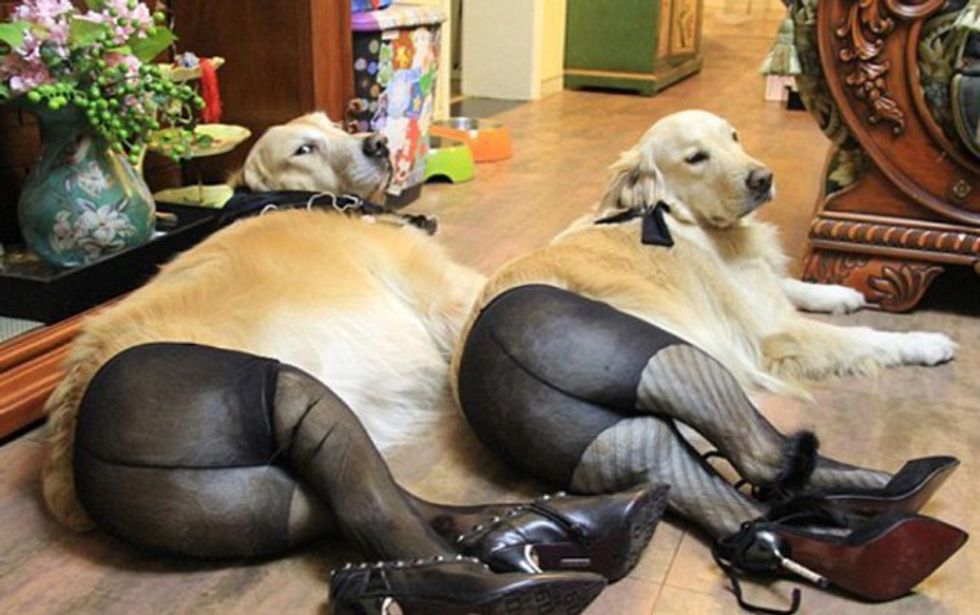 Crazy dog ladies think it's hilarious to put human clothing and accessories on their dogs, take pictures and plaster them all over social media. Who doesn't love a picture of a dog in tights? You'll definitely get a good laugh.