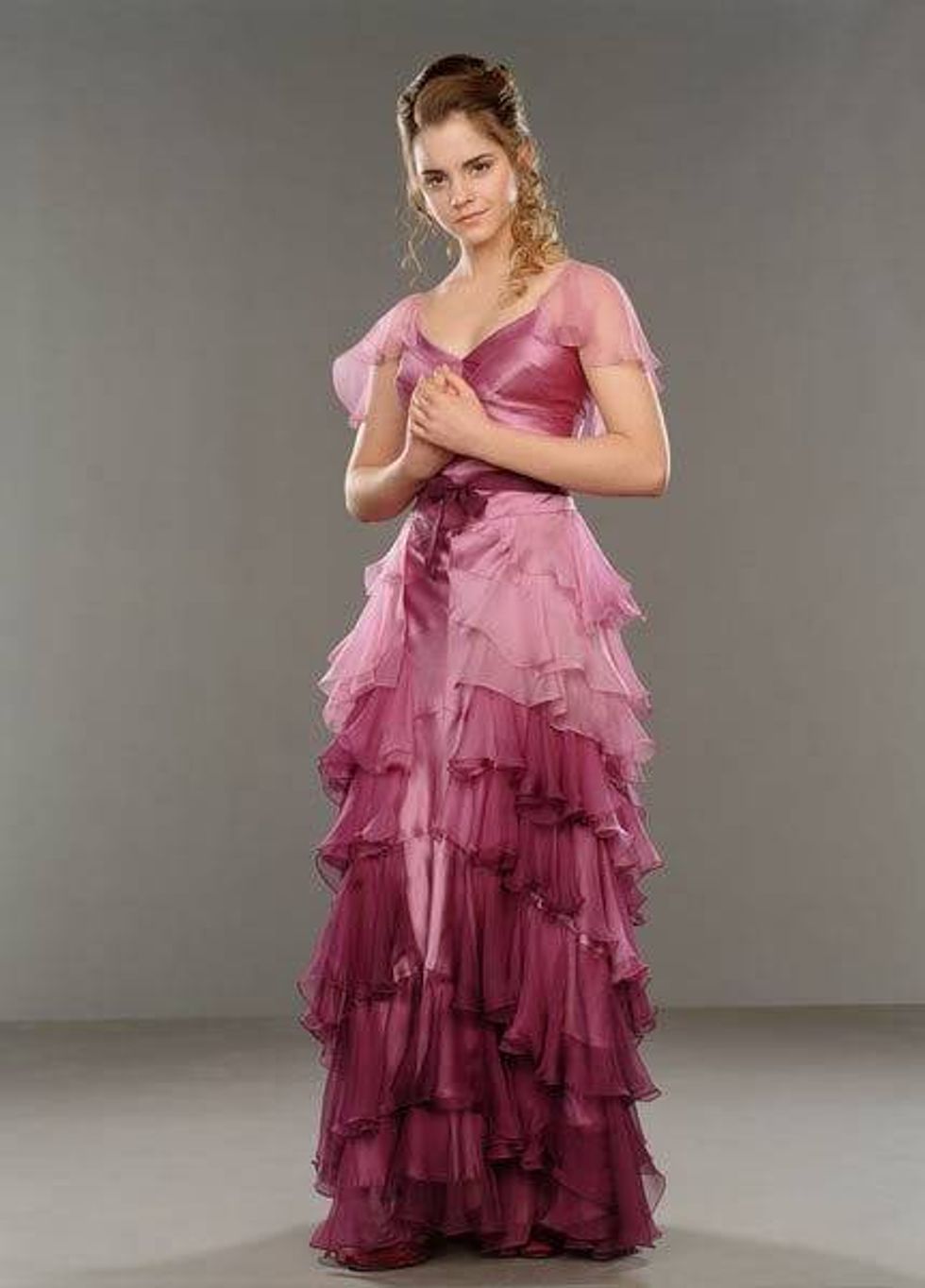 This is at the wedding of Bill Weasley and Fleur DeLacour when Hermione (again) comes to the rescue of Harry and Ron by "apparating" them out of the wedding when they hear the He Who Shall Not Be Named is coming. Throughout the HP series, Hermione shows girls that they can save they day without having their bodies sexualized by Hollywood.
