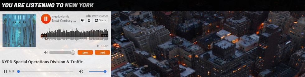 Meet Eric Eberhardt, he is a man from San Francisco and creator of the website "You are Listening to", a bizarre and aberrant website that takes images of famous cities like Chicago, Austin, Baltimore, and Boston, plays often wordless and pneumatic music from a playlist on SoundCloud, and finishes it off with an overlay of a police dispatch radio feed. The effect is surreal experience of a city that immediately roots the listen among the cities atmosphere. The almost indiscernible speech between live radios is only match in strangeness and awe as the musical accompaniment, both creating a soundtrack to the night-bathed skyline of New York or San Francisco