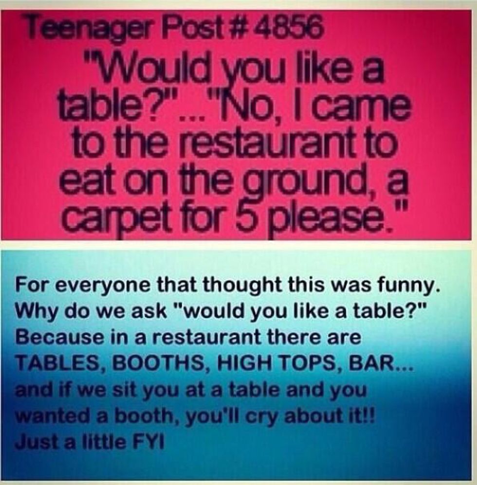 If you work at a restaurant, please share! Maybe more people will learn how to be a good guest.
