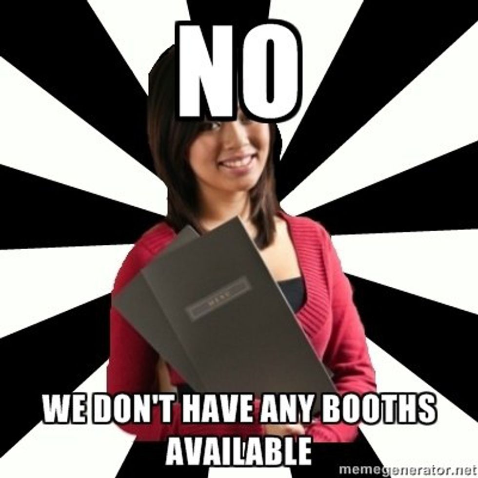 And no, you cannot fit your party of seven in a four-person booth. Go away now.