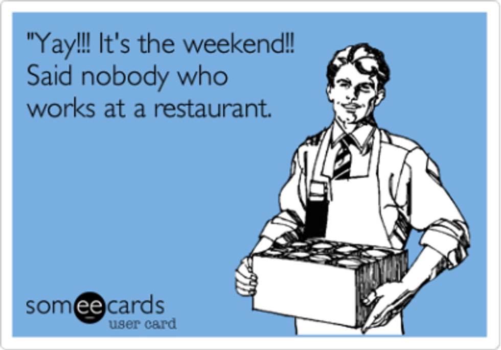 Before working at a restaurant, I didn't even stop to think of half of the issues waiters, waitresses, chefs, hosts, and hostesses have to go through. It really is eye opening, and now I'm so much more conscientious about leaving a mess or being picky about where I'm being sat. I tend to tip a lot more and care less about the little things. I think it should be mandatory for everyone to work at a restaurant at least once in their life. Feel free to be a hostess on a Friday, a server on a Saturday, and a server assistant on a Sunday; it's hell.