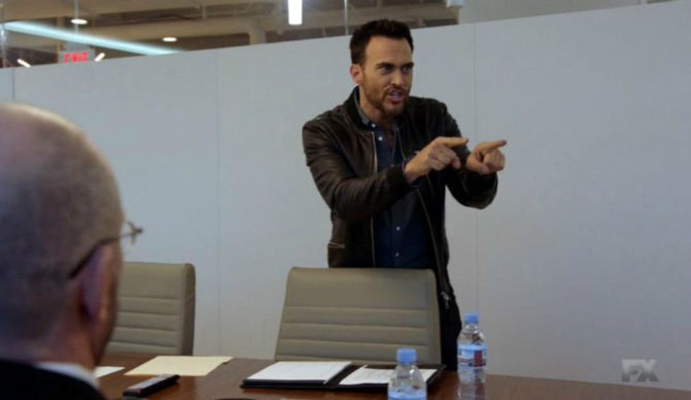 As our first half of "Roanoke" closed some episodes earlier, we were introduced to the cast behind the re-enactments and the absolutely deranged creator, Sidney Aaron James (Cheyenne Jackson). Sidney, in a self-absorbed ploy to keep himself at the top of the rating polls, devises a sequel to his hit, "My Roanoke Nightmare," in which their "real-life" storytellers, as well as their dramatic counterparts, are to return to the home during the doomed blood moon. His pitch for "Return To Roanoke: Three Days In Hell" goes off without any hint of concern from his producers... Because, hell, who doesn't want to see that juicy, sadistic piece of television?