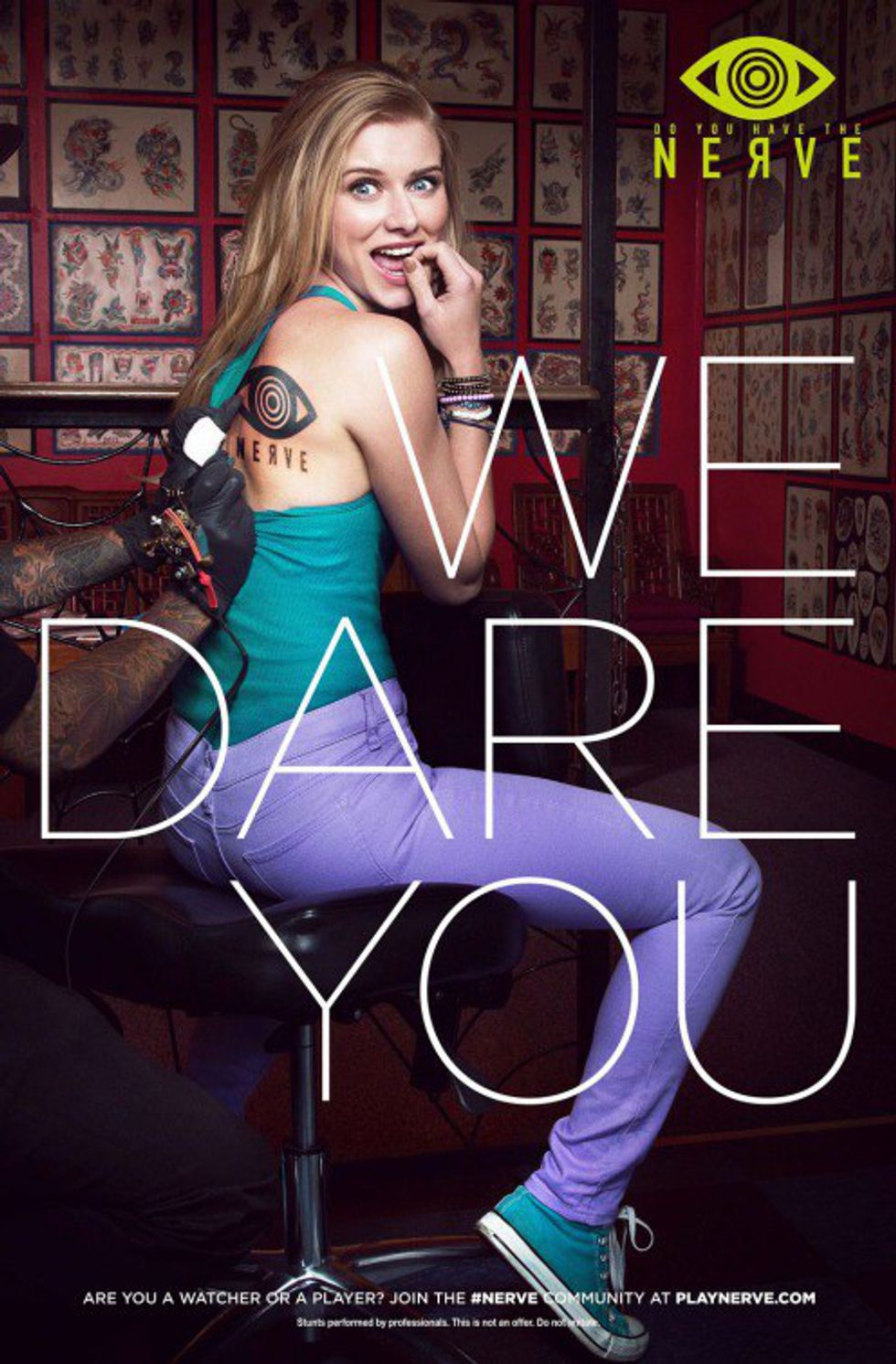 The movie centers around a character named Venus (portrayed by Emma Roberts) who is a shy, wallflower type of girl, who is known for constantly sitting on the sidelines until her best friend, a fame seeking adrenal junkie, wraps her up into the game of Nerve. The game lasts for 24 hours and after you complete each new dare you earn more cash, with the stakes rising and the dares becoming risker and scarier. Not only do the watchers watch your every move, but they also get to actually choose which dares you perform and can accurately do so by scanning your personal social media pages and learning information about you so that they can use their new knowledge against you. For example, if they find out you're scared of heights, they can dare you to hang off of an edge of a tall building.
