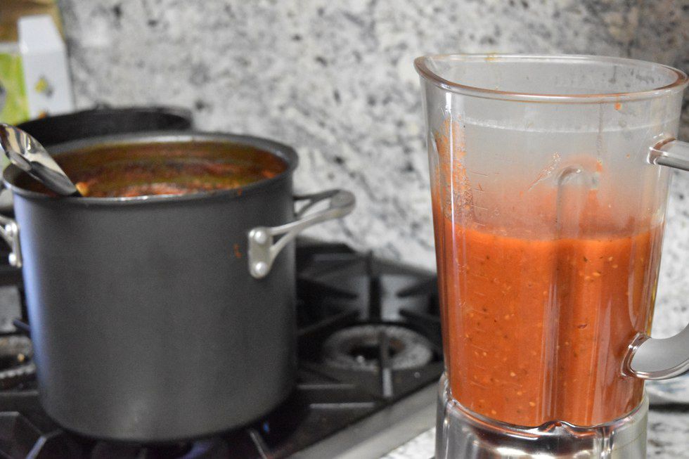 Unless you're a fan of onion chunks, you'll need to visit the blender (or immersion blender) again. For the traditional blender, it's as simple as pouring the sauce in and choosing whatever option blends it smoothly. It will be hot, so use a hand-towel over the lid to protect your hands and be careful of steam when you open the lid.