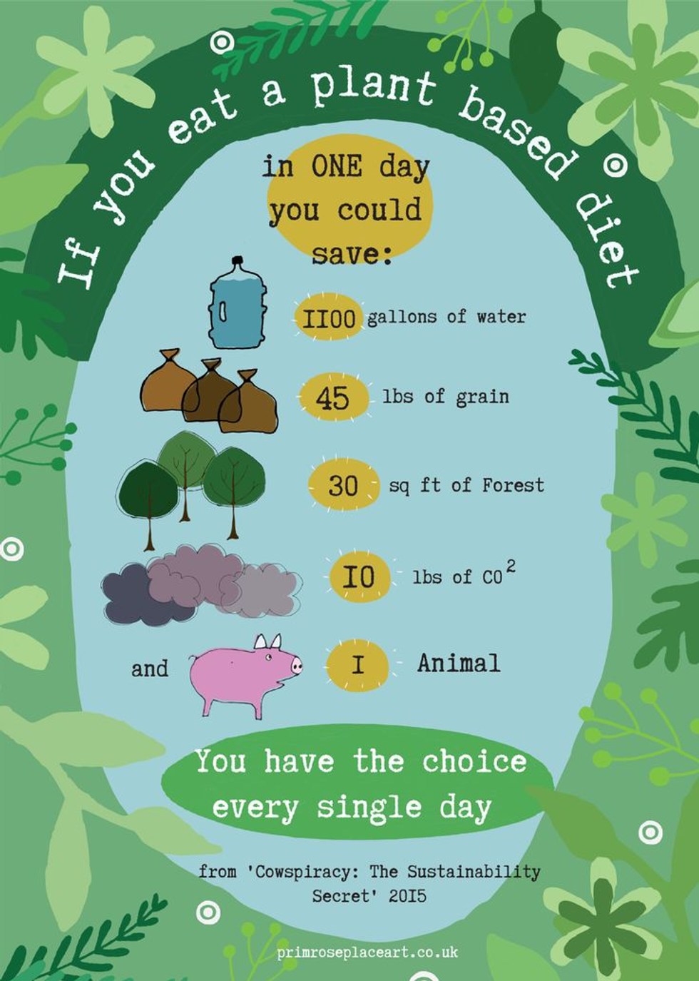 It takes 100 to 200 times more water to produce a pound of beef than it does to grow a pound of plant foods. You save water, animals, and land even by going plant based for a few days a week. It’s beneficial for your health and the animals and it is worth it to give it a try.