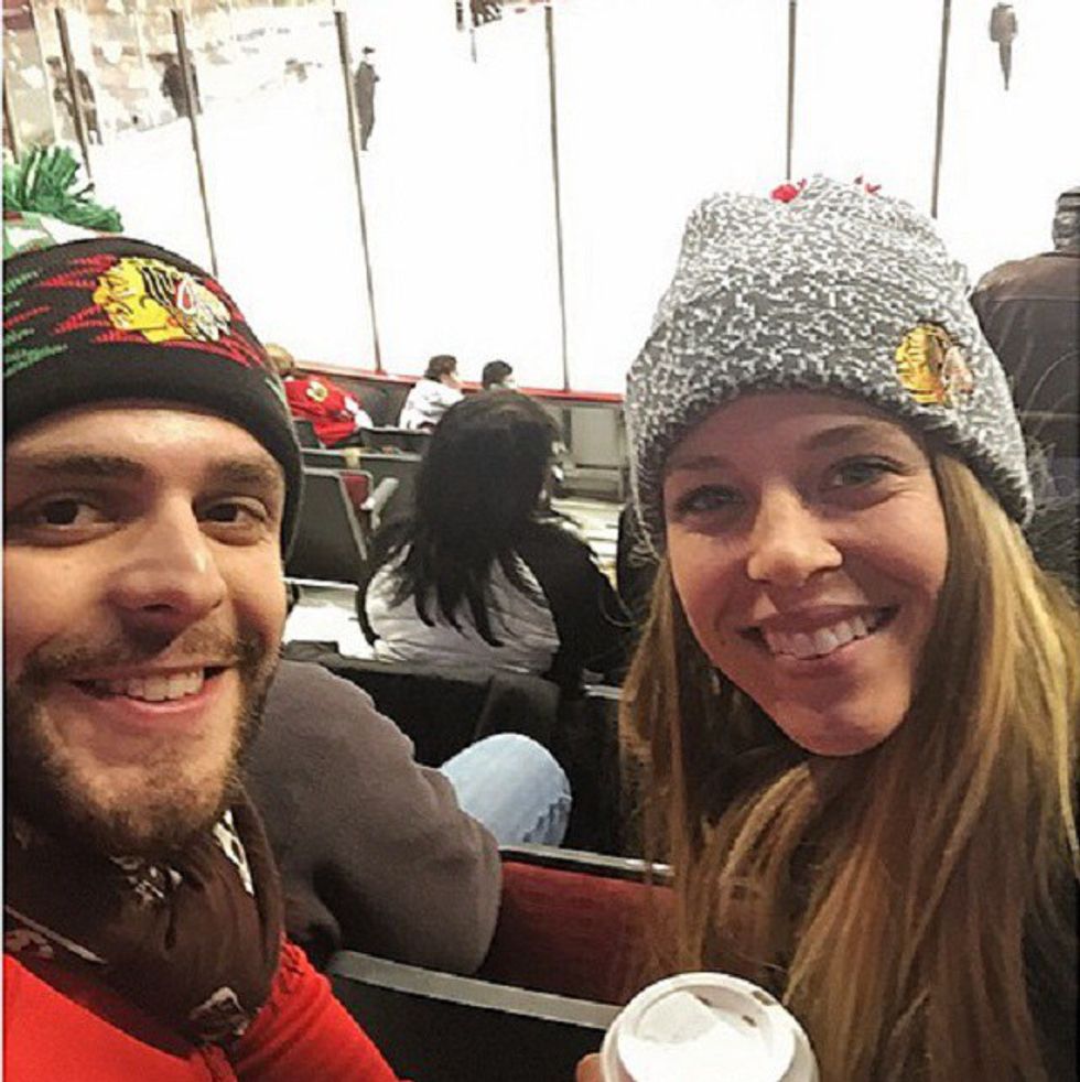 4. Even at a Chicago Blackhawks hockey game they are cheesin' for the camera.