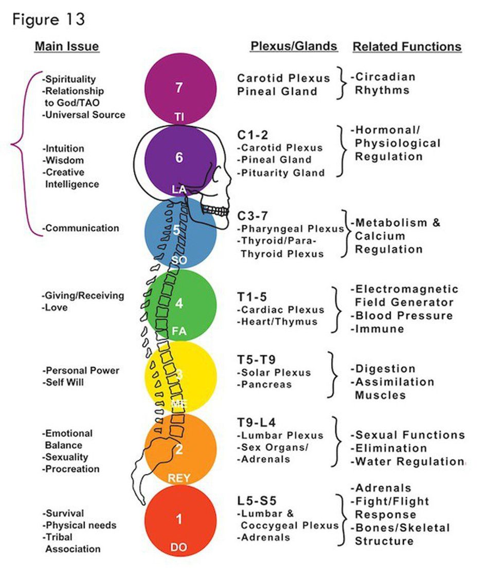 Each chakra corresponds with a different nerve bundle, and this is where the whole hippie meets science becomes a full circle. If we are to look at the spinal cord, and what each different section contributes to the body, chakras begin to make a lot more sense.