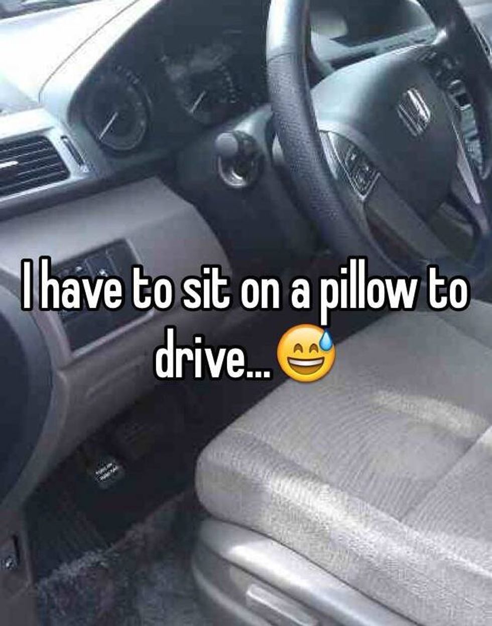 10. Sitting on a pillow while driving to see out the car windshield. #drivingproblems