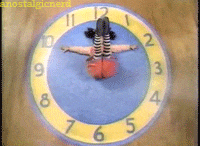 "With Loonette and Molly - a clown and her dolly on the big comfy couch!" Loonette frequently makes messes and cleans them up by stuffing everything into and under her couch. She does a daily clock stretch- she lays on a carpet with a clock on it and her arms and legs are the hands of the clock as she stretches. (I used to follow along with her when I was little). She has dust bunnies under her couch and always visits her granny and the unicycle riding mailman. Every episode finishes with a story and the "10 second tidy".