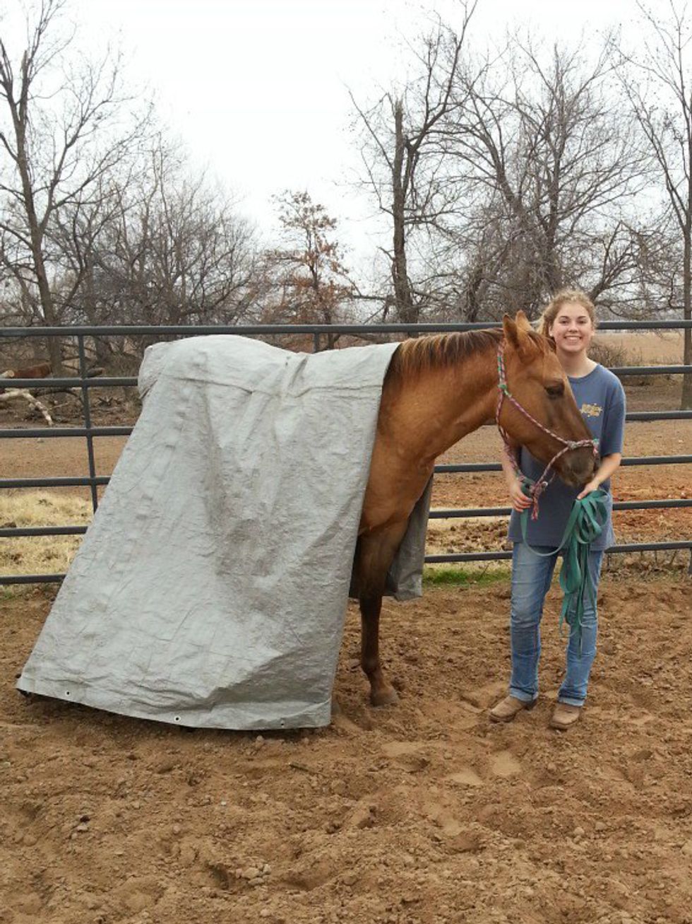 You'll then move on to desensitizing the horse to things like the twirling of ropes and the flapping of a plastic bag or tarp, and even the texture and weight of a saddle pad can be frightening or spark curiosity in a young horse. Along with getting them used to foreign objects, you'll be teaching them how to handle new and potentially scary situations. The more the horse is exposed to those interesting things and places, the less they react negatively to new things and places. So, if your horse is used to your jacket being tossed onto or around him, he will be much more likely to not care about something different, like a saddle pad, doing the same thing. Things that make "scary" noises, like wind blowing in a plastic bag, also need to be exposed to your horse on a regular basis, so that things like tarps and walking over plastic bags and such won't phase your horse. This is particularly beneficial when taking your horse to shows, going on trail rides, or simply being in a new environment.