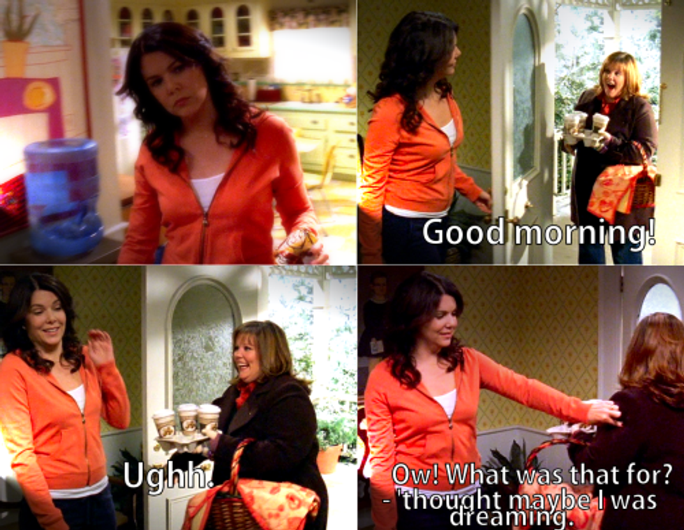 Especially in that episode where Lorelai calls the wedding off but it was too late because Sookie had already become attached to the cake.