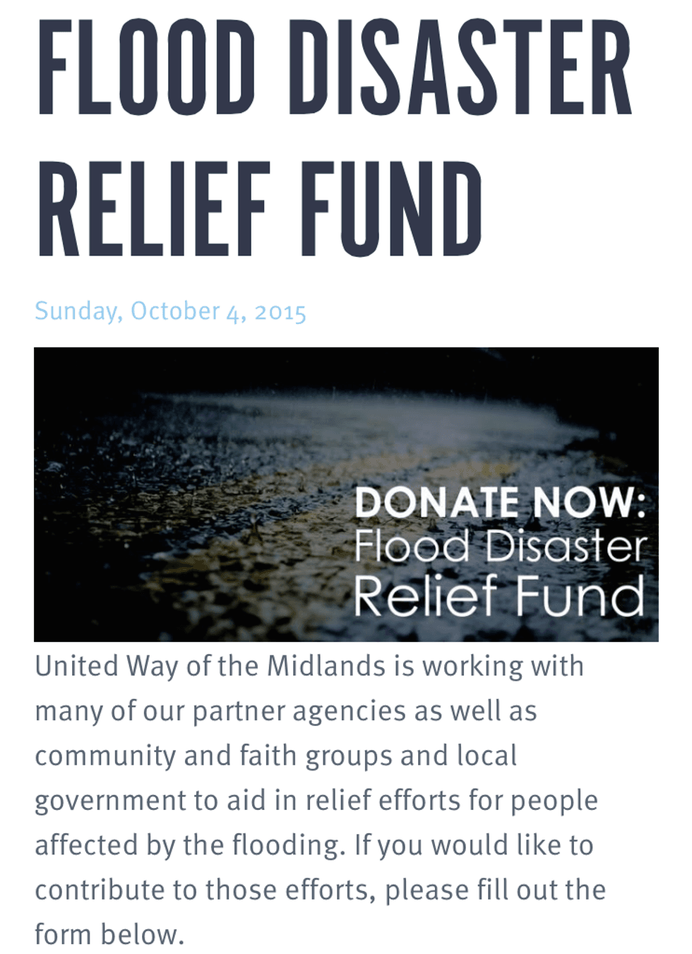 As the number of tragedies in the state of South Carolina rises, more and more people are being traumatically affected by the effects of the historic flood that has taken place over the last few days. Record-breaking rainfall has compromised water systems, tragically devastated hundreds of families and their vehicles, belongings, and homes. Entire parking lots and shopping centers are flooded, businesses are shut down, city-wide curfews are being issued, and all citizens are being seriously urged to stay inside and off the roads due to the collapse of roads and breaching of dams.