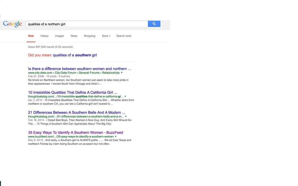 Northern girls have no good qualities? Again, WRONG. Northern girls are funny, sensitive, and can be just as fun as any southern girl can! Plus, city girls are pretty dang attractive if you ask me, even though we get pegged for being too skinny or don't care as much as southern girls.