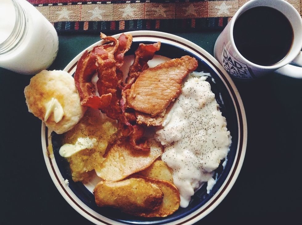 Cornbread, biscuits and gravy, maters, taters, soup beans, and chicken and dumplings. Southern cooking is my favorite thing about being from the south. Everything is cooked in grease and smothered in something. If you've never had anything I mentioned above, then come visit me and I'll make sure you've tried them all.