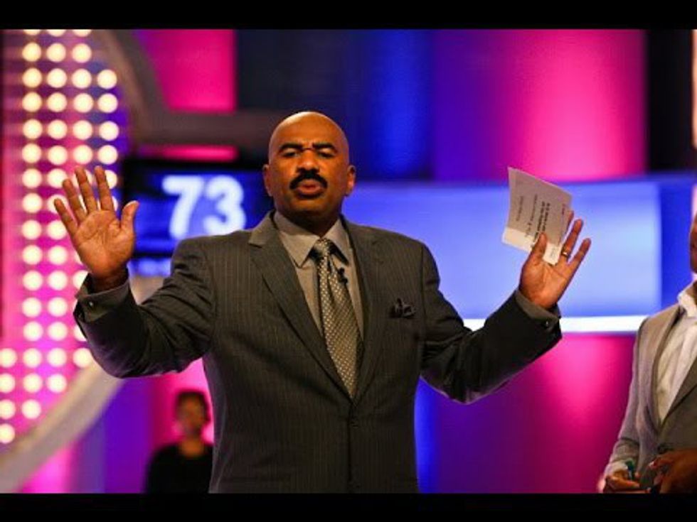 I have been a fan of "Family Feud" for a long time. Who doesn't love playing along with the families and seeing if you can get the answers right? And let's be real, it's really satisfying when you get an answer right that the families couldn't. Although I have been an avid watcher of the game show, it wasn't until Steve Harvey came along would I find myself actually laughing out loud at the way he makes fun of people. Sometimes I hear people say an answer and I think to myself, "wow, that was stupid." But when you see Steve Harvey give that face, the one where he is basically judging you for everything that you are, that's when you know. He is hilarious and adds so much more personality to the show. In case you haven't seen him in all his glory, here are some of my favorite examples of his hosting ability.