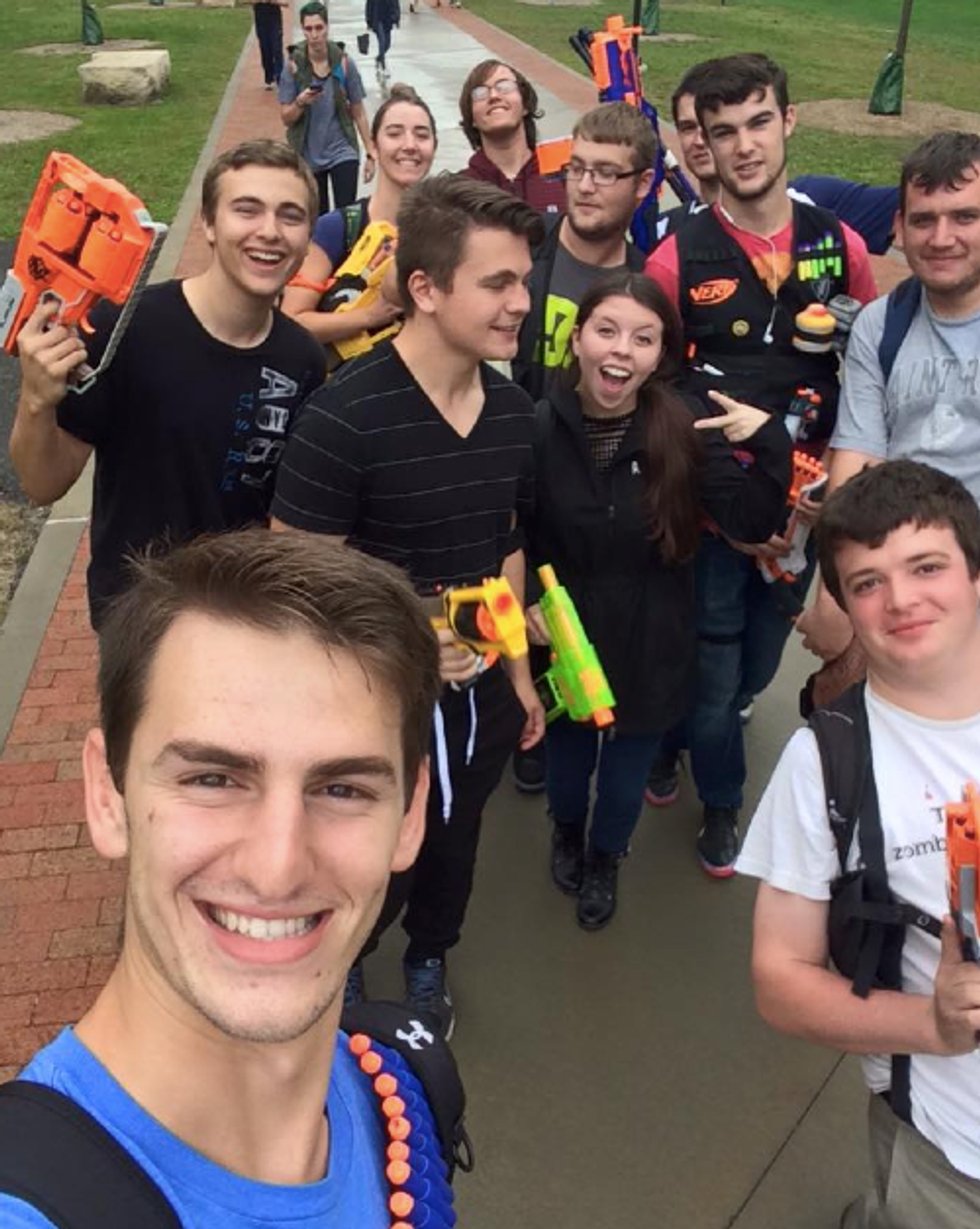 Everyone who plays the game is a part of the club and brings something of their own to the table. We have actors and directors who give the game a story with their clever and highly-self-aware video clips. We have makeup artists who dress up the zombies for the finale. We have a dedicated team of moderators who plan out each mission to be dramatic and action-packed. There are players who push the boundaries of the game with their inventive strategies: some humans craft their own blasters, some play only with socks and some play with only their feet, trying to survive purely by running away. Some players prefer being zombies and are notorious for their speed or their ability to lead a charge. Some players are just nice people who make the game better for everyone else.