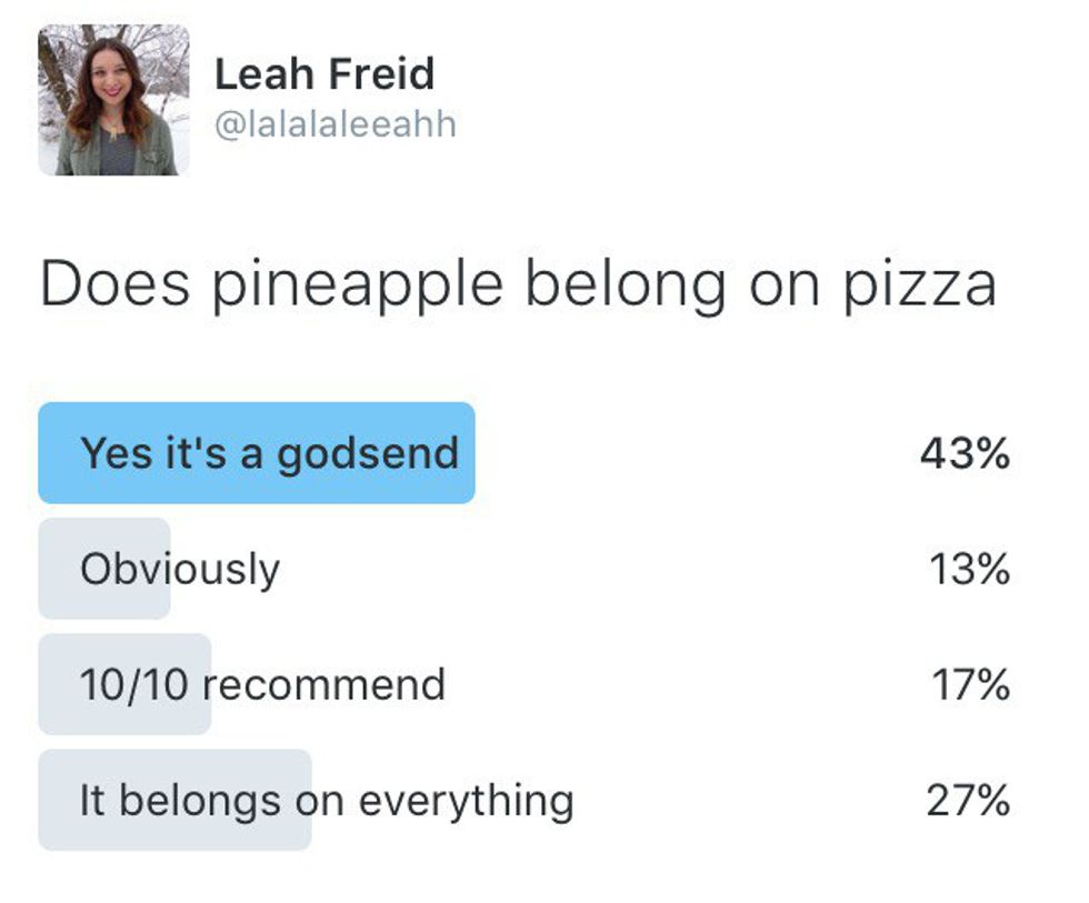 This may not have scientific evidence behind it, but what kind of animal wouldn't want to indulge in the glory that is pineapple pizzas?