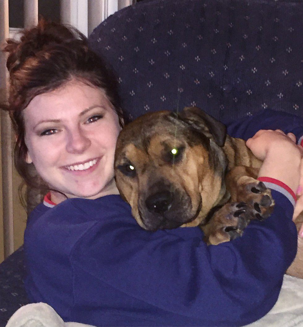Fast forward to April 2013. My mother got a text from a friend saying that her daughter was fostering two 4-week-old puppies. Me, being the extreme dog lover that I am, absolutely had to go see these small pups. Immediately when I held the brown puppy, I fell in love. She wasn't as pretty as the other one, but she was cuddly and playful and just overall the best thing I've ever come into contact with. Against my dad's wishes, she ended up coming over to our house so he and my brother could meet her. All of us were in love.