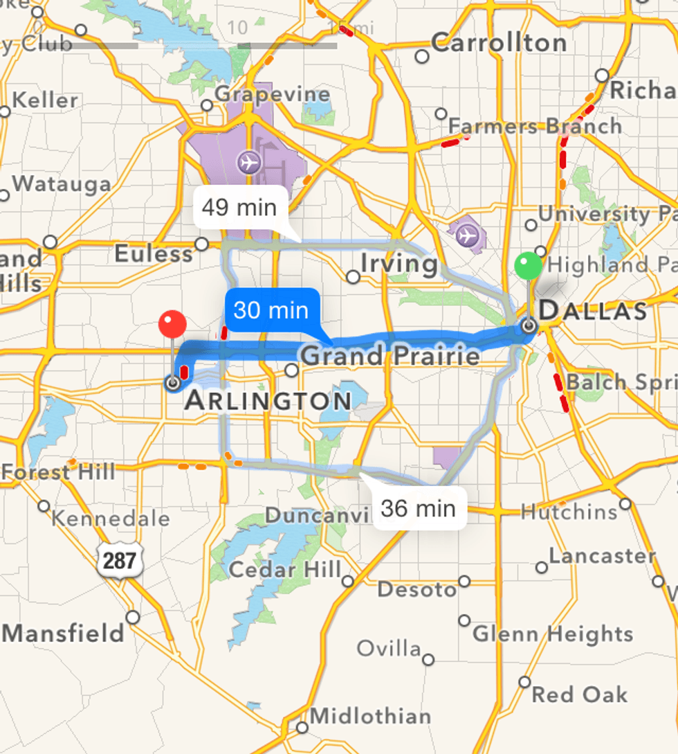 Notice how I didn't talk about Dallas? It's not my next door neighbor I can just walk over and say "hello" to. I only go to Dallas if I am visiting my grandparents or friends. My mom wouldn't let me drive to Dallas until my senior year of high school because the traffic and distance make the drive treacherous. I really don't know much about Dallas because it's ANOTHER CITY that I DO NOT LIVE IN.