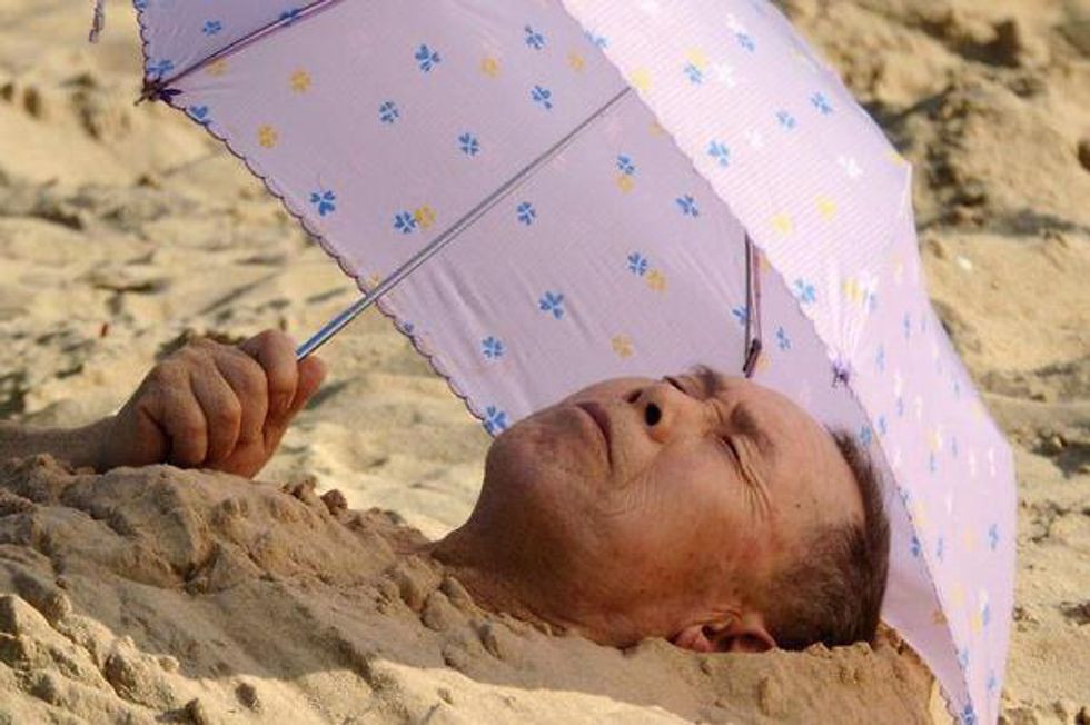 The sun turns into the devil when you can't find shade. Towels, umbrellas, even sand work as great shields.