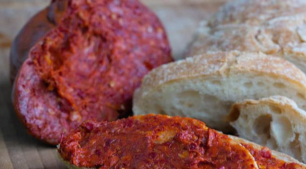 2. Salumi, fresh cheese and ' Nduja', a spicy salami from Calabria. Very hot!
