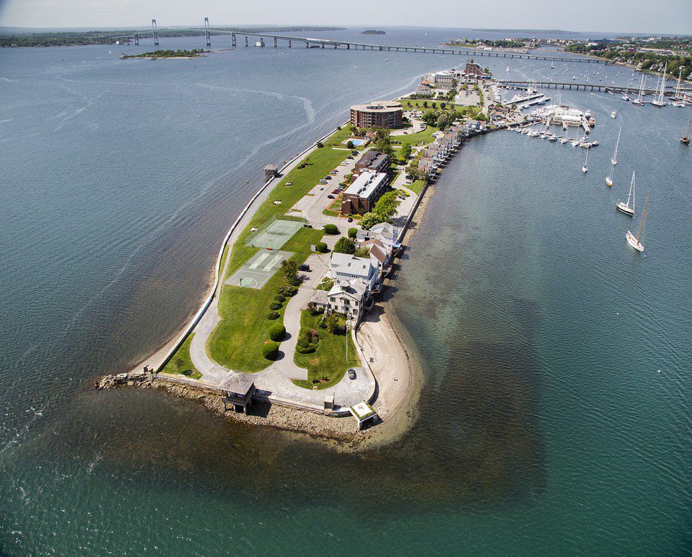 Located in Narragansett bay, this island that is a part of the city of Newport houses The Marina Cafe & Pub, Belle Mer and the Hyatt Regency Newport hotel.