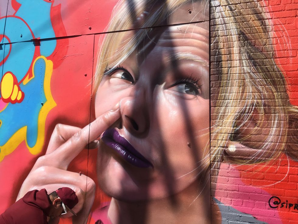 When you see the graffiti art up close in person, you might think to yourself, "What were these guys taking when they did this?" Seriously, words can't even describe how trippy and realistic these works of art are. A couple of my favorites included Law & Order: SVU actress Kelli Giddish touching her nose...