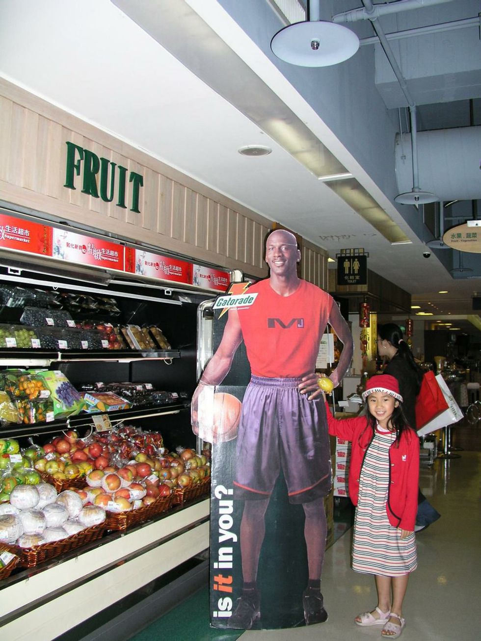 Her story began when she was starting third grade (she was 8 years old). She was born in New York but she was sent to a boarding school in Tai Pei. She began her obsession with Michael Jordan when she watched a Gatorade commercial starring the basketball legend. After she watched the commercial, she was hooked. One day she went shopping with her friends and they passed a store that had a cut-out of Michael Jordan. She was so excited that she ran inside and inquired about how much it would be to take him home. She paid like 200 NT (which is about $6) for him. From that moment onwards, she carried him everywhere she went.