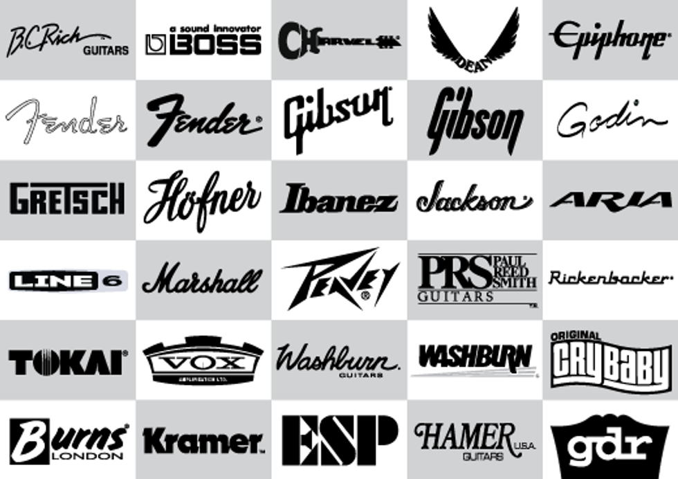 Pictured below are some of the more well known guitar manufacturers. In addition to the instruments, most of these companies also make their own accessories, like guitar bags, straps and picks.