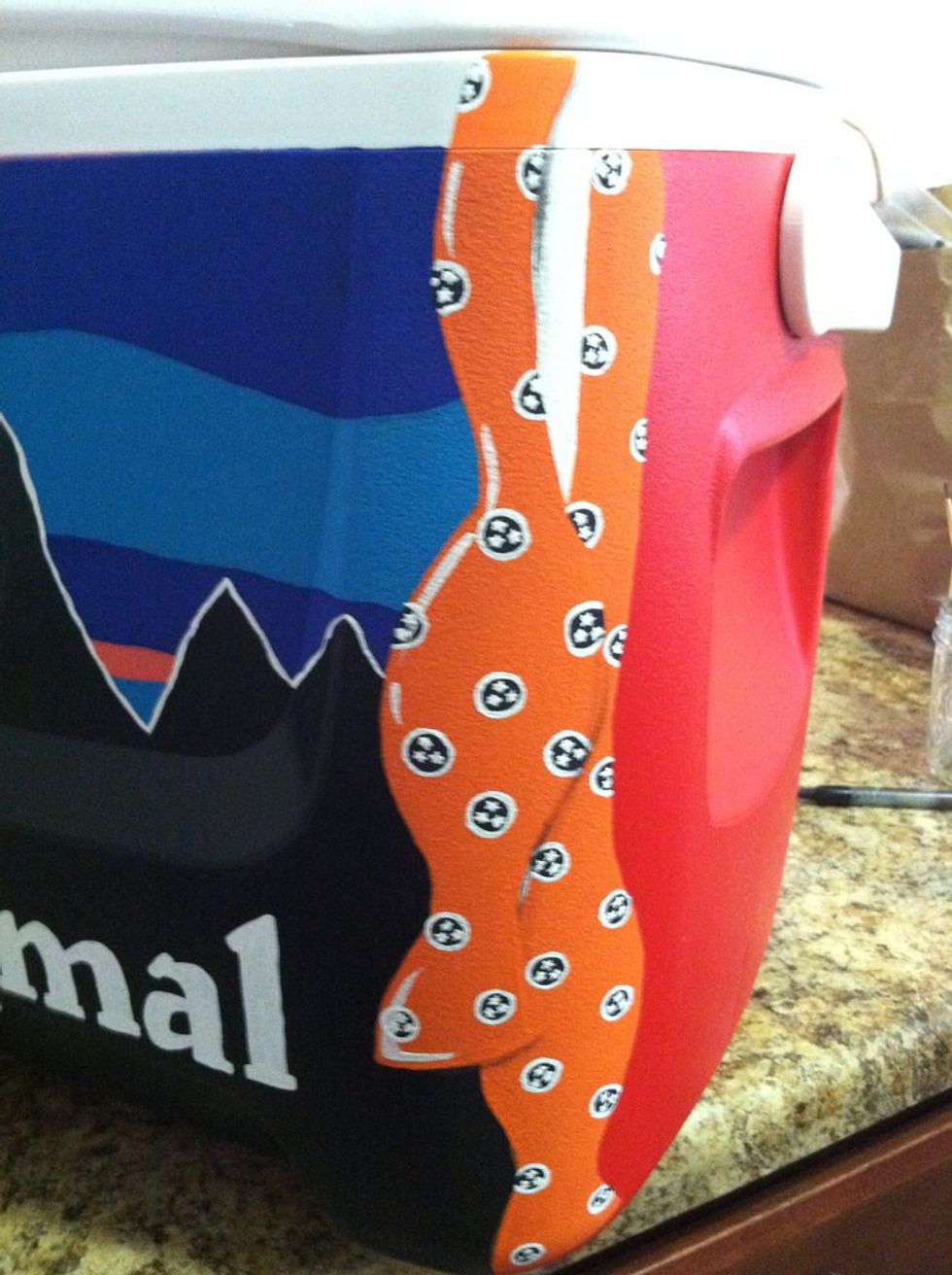 You're going to spend an unreasonable amount of time painting a cheap cooler that is probably just going to get messed up anyways.