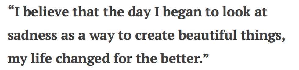 It takes knowing the other side, the suffering, to experience the better side, the pure joy. Each person will experience pain in his or her lives, that’s the common denominator we each share. But, the true character of each one of us is revealed by whether or not we choose to use that pain to create beauty.