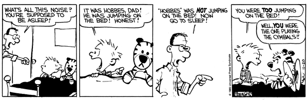 Yet, two strips later, there's Hobbes as a stuffed tiger. Well, while Calvin's parents, or pretty much anyone besides Calvin, are around. This duality is never really explicated, and is a testament to Calvin's imagination.