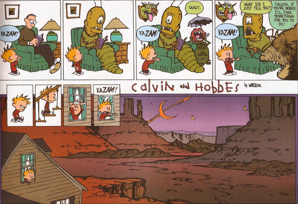 For those unaware, "Calvin and Hobbes" is a newspaper comic written and drawn by Bill Watterson that ran from 1985 to 1995. It stars Calvin, an exuberant and mischievous 6 year old, and Hobbes, Calvin's imaginary/toy tiger friend.