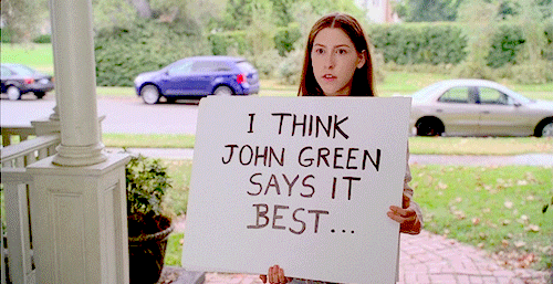 Sue is all of us. Her "Love, Actually"-inspired profession of love using a John Green quote from "The Fault in Our Stars" is perfection.