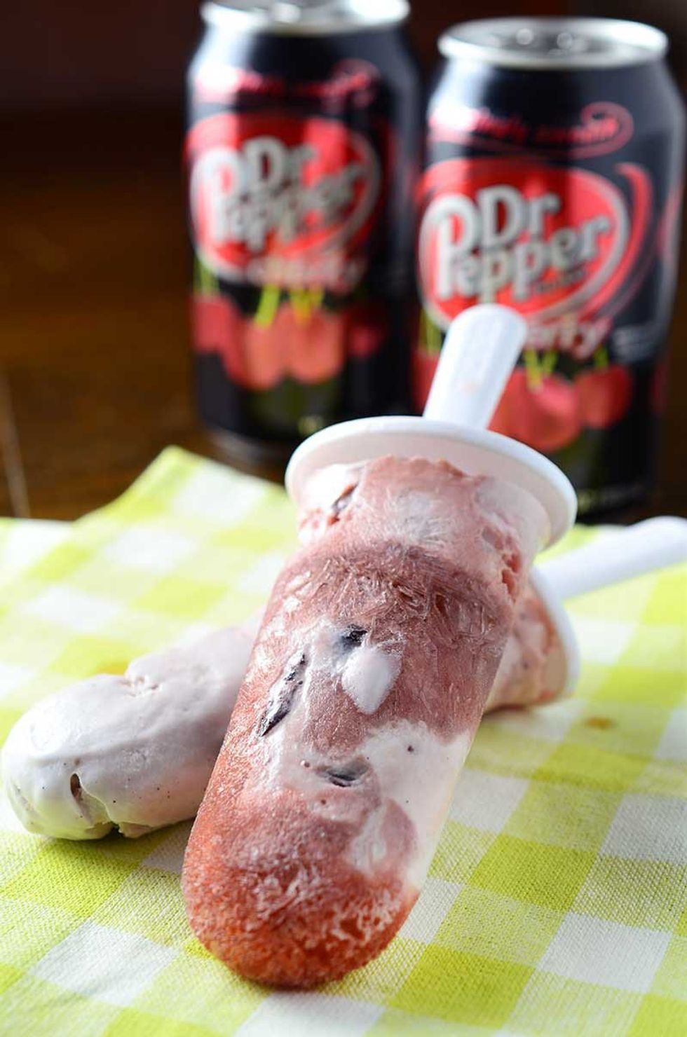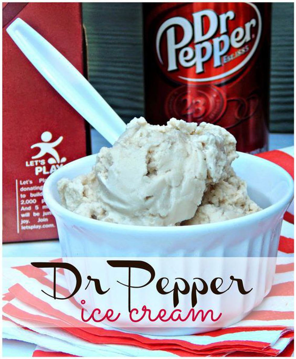 Use the original Dr. Pepper, or use cherry flavored as pictured above, and mix with vanilla ice-cream. Freeze, and enjoy.