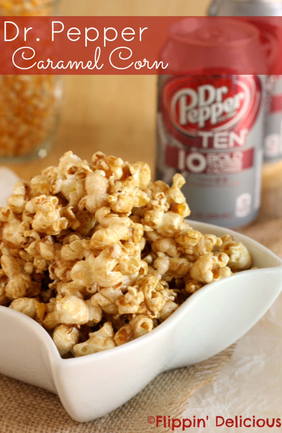 Bring a can of Dr. Pepper to a boil, and add a cup of mini marshmallows. Once melted, stir into the popcorn. The perfect movie time snack. Have some Dr. Pepper to drink on the side, too, of course.