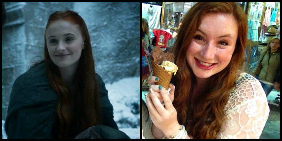 Since our most notable feature is our carrot top, it is assumed that we look exactly like every other ginger ever born. I've been personally told that I look like Lindsay Lohan, Emma Stone, etc., which anyone who knows me well will tell you that we share no resemblance. We also always seem to look "exactly" like that single, out-of-placed redhead that literally every family has but no one actually knows how they ended up with the ginger genes to begin with. I will say, I've been told I look like Sansa Stark from Game of Thrones several times, and I definitely plan on milking that resemblance for the rest of eternity.