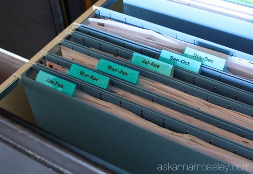- Organize, label and file your bills and other paperwork by month and year, not by company.