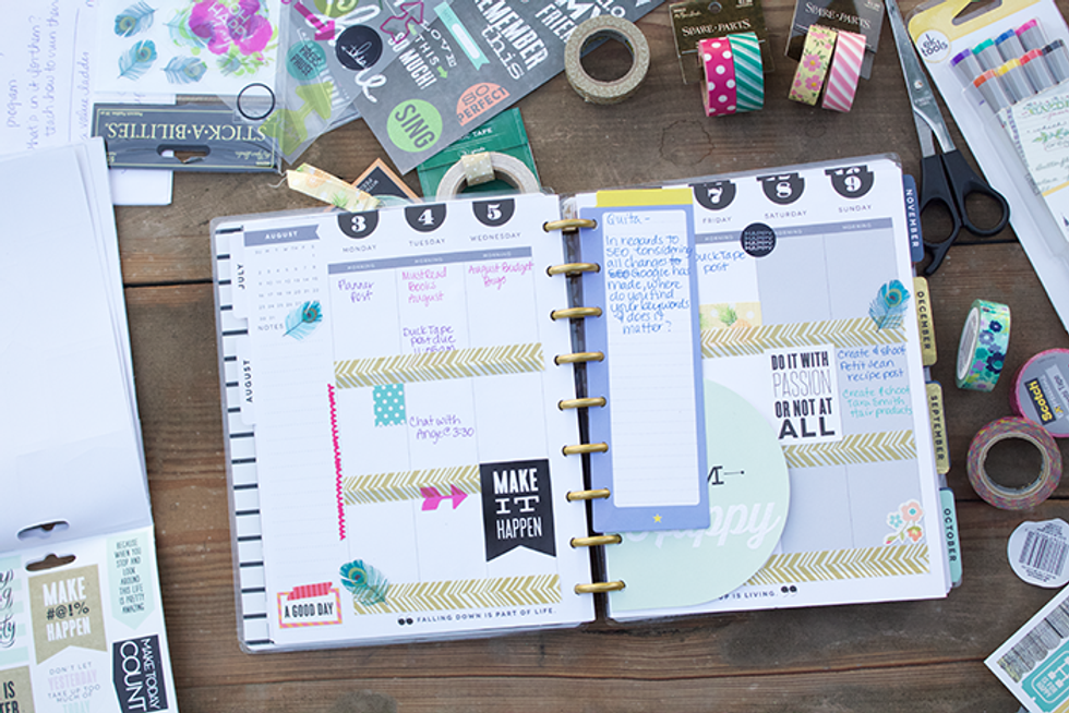 - Keep a blank piece of paper in your planner to jot down random thoughts. This will help you remember them and declutter your mind.