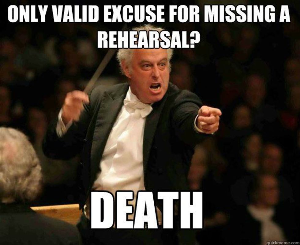 17. Unless you’re dying or dead you better be at rehearsal on time!