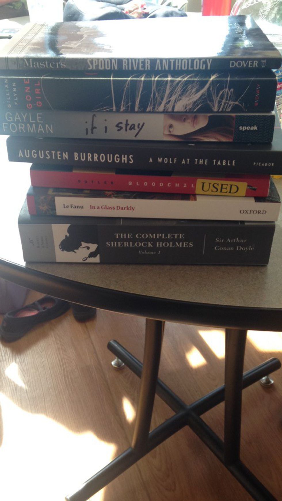 So far, I've read most of "Bloodchild" and a little bit of "Spoon River Anthology." Bring books that will keep you entertained. Any story from the "Sherlock Holmes" collection is always fun to read because Sherlock is so wonderfully sassy. I swear, I was Sherlock in my past life. I sort of channeled Rihanna and read, read, read, read, read a lot this weekend.