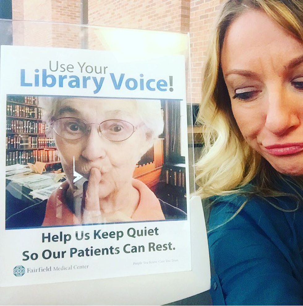 I think Mom's expression says it all. I'm used to speaking at rock concert decibels, so this was hard for me, too. Then again, when you live in a women dominated family, this rule is difficult to follow, especially when you have all eight of us in the waiting room.