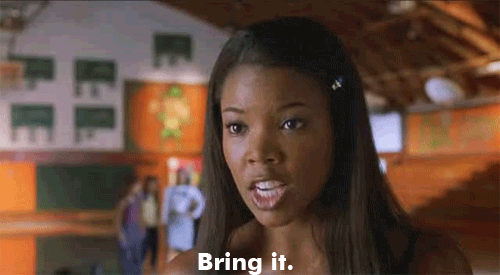 When this idea first sprouted in my mind, I had to decide which movie to focus on: Bring It On (the original) with Kirsten Dunst, Bring It On Again (which nobody I know has seen more than once), Bring It On: All or Nothing with Hayden Panettiere, Bring It On: In it to Win It with Ashley Benson (pre-PLL), or Bring It On: Fight to the Finish (again, I’ve never heard of anyone watching this twice). Ultimately, I decided on Bring It On (the original) since it seems to half-way stick to what cheerleading actually is.